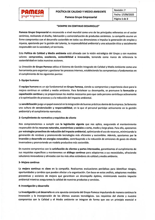 Política de calidad y medio ambiente